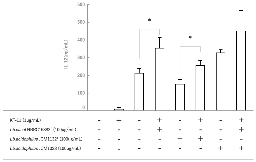 IL-12産生を Lactobacillus crispatus KT-11株が促すことが明らかとなりました。